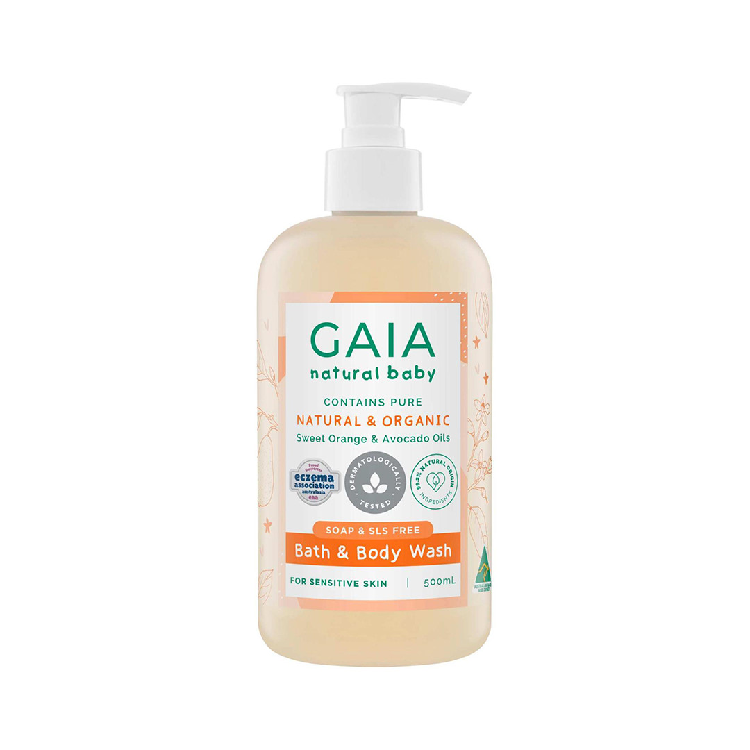 Gaia Natural Baby Bath & Body Wash cares for your newborn, infant or child with gentle coconut derived cleansing agents, certified organic sweet orange pure essential oil and skin softening organic oils to keep your baby's skin soft, smooth and fresh.