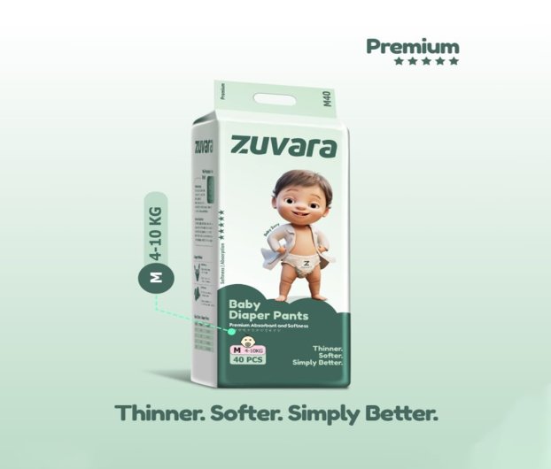 Zuvara Diapers are thoughtfully designed disposable baby diapers that provide long-lasting dryness, comfort, and skin protection for newborns and infants. Crafted with ultra-soft materials, these diapers are gentle on delicate baby skin and help minimize the risk of irritation and rashes. The advanced absorbent core quickly locks in wetness, keeping babies dry for extended hours, while the breathable design allows proper air circulation for added comfort. With a flexible 360-degree fit, Zuvara Diapers support natural movement, ensuring babies stay comfortable during sleep and play.