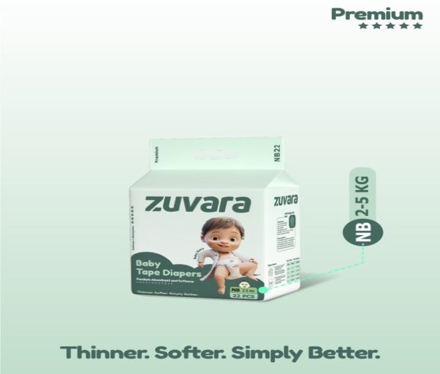 Zuvara Diapers are thoughtfully designed disposable baby diapers that provide long-lasting dryness, comfort, and skin protection for newborns and infants. Crafted with ultra-soft materials, these diapers are gentle on delicate baby skin and help minimize the risk of irritation and rashes. The advanced absorbent core quickly locks in wetness, keeping babies dry for extended hours, while the breathable design allows proper air circulation for added comfort. With a flexible 360-degree fit, Zuvara Diapers support natural movement, ensuring babies stay comfortable during sleep and play.