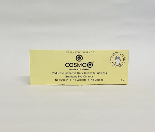 Cosmo Q Under Eye Serum, 15 Ml, is a skincare product designed to reduce under-eye dark circles and puffiness while brightening the eye contour. It is formulated to be paraben, sulfate, and silicone-free, ensuring that it is gentle and safe for sensitive skin. Packaged in a convenient roll-on bottle, the serum is easy to apply and suitable for all skin types. By incorporating this serum into your daily skincare routine, it can help make your eyes look more awake and refreshed.