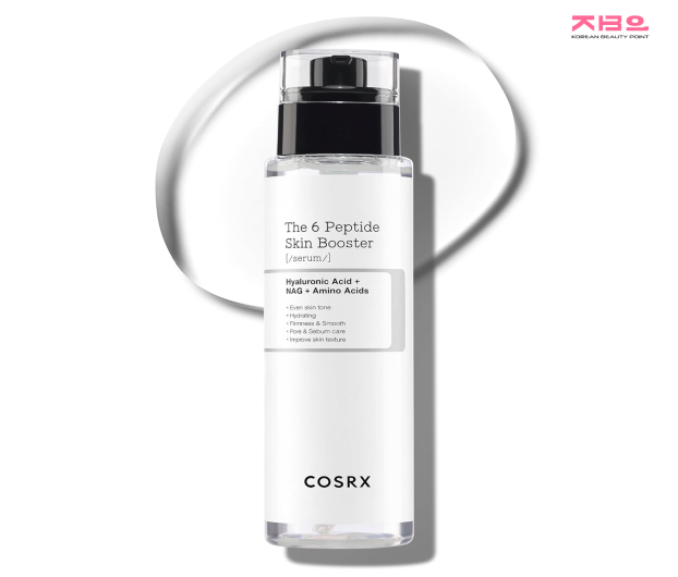 COSRX The 6 Peptide Skin Booster 150ml is a comprehensive serum designed to enhance overall skin health. Infused with a powerful 6 Peptide Complex, it boosts skin elasticity, refines texture, and offers effective pore care. The addition of niacinamide brightens dull complexions, while hyaluronic acid provides deep hydration, and allantoin ensures soothing comfort. This all-rounded serum lifts, evens skin tone, and controls sebum, making it an excellent first-step serum that pairs well with other active ingredients. Dermatologically tested, it is suitable for all skin types, including sensitive skin, and perfect for those seeking to improve their skin’s overall condition.
