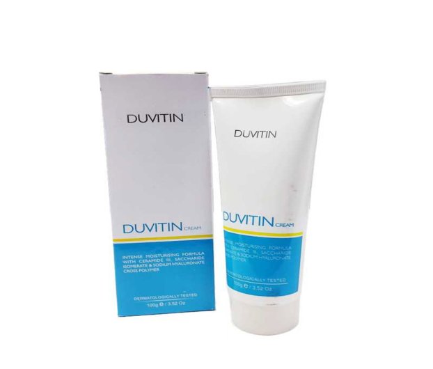 Duvitin Cream is an intense moisturizing formula designed to provide deep hydration and nourishment to the skin. Enriched with Ceramide III, Saccharide Isomerate, and Sodium Hyaluronate Cross Polymer, this cream ensures optimal moisture retention and skin barrier protection. Dermatologically tested, Duvitin Cream is free from mineral oils and waxes, making it suitable for sensitive skin. This advanced formula helps to soothe and hydrate, promoting a smooth, healthy, and radiant complexion.