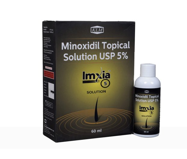 Imxia 5% Solution is a prescription topical treatment by KLM Laboratories used for androgenetic alopecia (hair loss) in men and women. Minoxidil works by widening blood vessels, improving blood flow to hair follicles, thereby helping revive shrunken follicles and stimulate new hair growth. It is applied directly to a clean, dry scalp—typically 1 mL twice daily—and consistent use over several months is recommended for visible results.