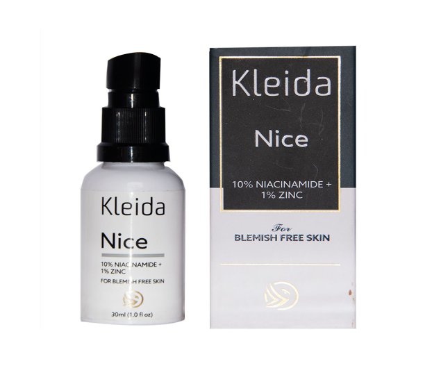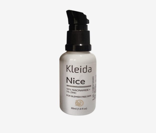 KLEIDA NICE SERUM is a potent skincare solution that combines 10% Vitamin B3 (Niacinamide) and 1% Zinc. This formula is designed to reduce skin blemishes, while revitalizing dull, undernourished skin. Niacinamide helps to balance skin tone and improve texture, while Zinc supports skin healing and reduces inflammation. Regular use of this serum promotes a clearer, brighter, and healthier complexion.